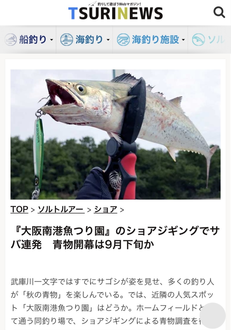 【『大阪南港魚つり園』のショアジギングでサバ連発 青物開幕は9月下旬か】