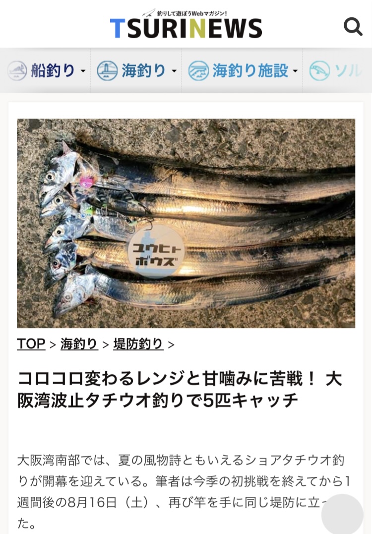 ●釣りWebマガジン『TSURINEWS』にて記事を公開しました。